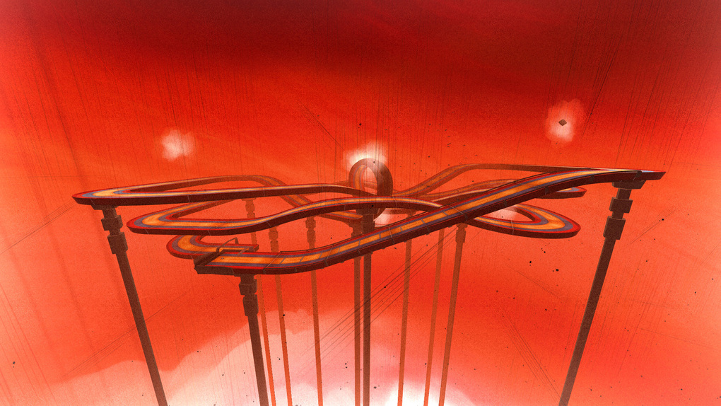 Around 1880, the world renowned german inventor Dr. Konrad von Krautkopf developed a machine, which could not only drive at enormous speeds, it could also fly. As he couldn‘t find a way to keep these machines working within our known laws of physics, he attempted to create a system which gave them a opportunity to operate outside of the usual cobble-stoned roads being used back in the 19th century. He called this system the „Krautscape“. Due to his obstinate character, he never told anyone, apart from his best friend Carl Benz. In the „Krautscape“, with simple control-mechanisms, the vehicles can control the street by directing the way it is built, in order to help them reach their goal in the quickest time possible. To affect the curve of the street, it simply would have to drive on the edge of it whilst driving through the street-building gate. Dr. von Krautkopf imagined this system as a flexible alternative for common modes of transport and also for special events like races, where it would create a racetrack.